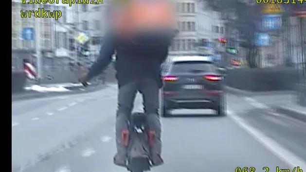 Wrocław Eyalet Polis Komutanlığı Trafik Birimi’nden üniformalı polisler, öğleden sonraki görevleri sırasında kişisel ulaşım cihazı kullanıcısının tehlikeli sürüşünü durdurdu. Wrocław merkezinde elektrikli tek tekerlekle hareket eden adam, yolda 61 km/h hızla giderek geçerli düzenlemeleri ihlal etti.